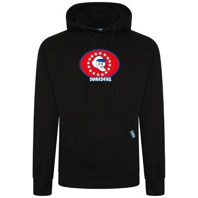 Featuring a striking Daredevil graphic, this hoodie embodies a spirit of courage and independence, making a statement wherever you go. With a relaxed fit, adjustable drawstring hood, and spacious kangaroo pocket, the Daredevil Hoody combines function with attitude, providing warmth and a place to stash essentials.